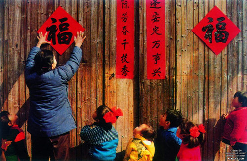 ? ? ? 而貼春聯(lián)也是過(guò)年必不可少的呢,每逢春節(jié),無(wú)論城市還是農(nóng)村,家家戶戶都要精選一幅大紅春聯(lián)貼于門(mén)上,為節(jié)日增加喜慶氣氛。